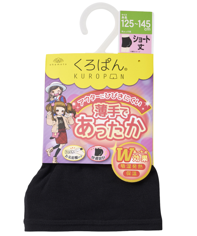 | 商品名 | くろぱん 薄手であったか キッズ ショート丈 起毛 吸湿発熱保温 |