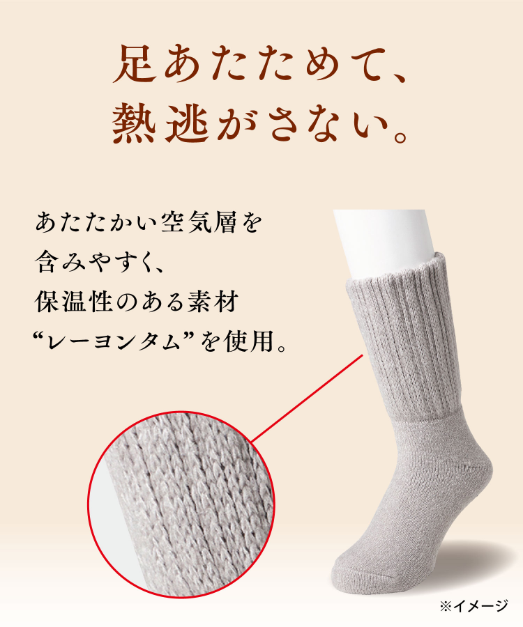 あったか素材レーヨンタムを使用しているため、温かい空気を含みやすく保温性に優れています。