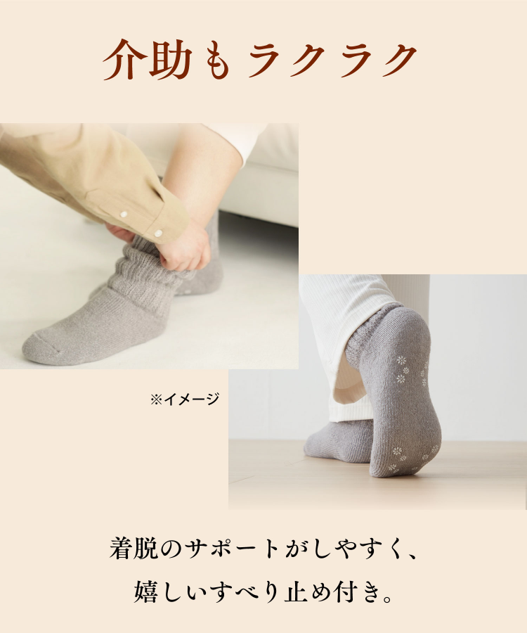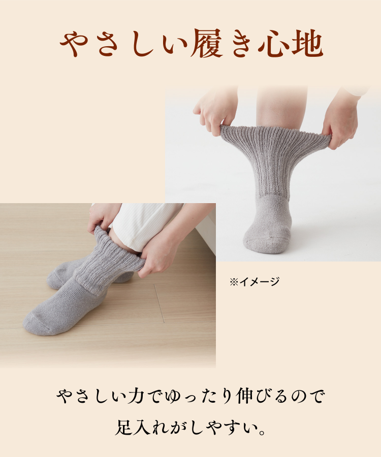 ぐーんと伸びて、やさしく戻る「履き口のびーる設計」のため、着脱しやすい