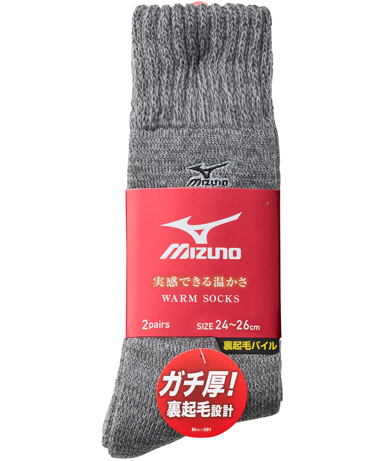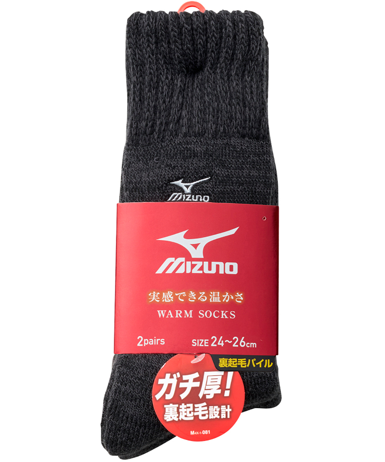 【期間限定10%OFF!】【2足組】MIZUNO デイリー ガチ厚 メンズ クルー丈 オールパイル裏起毛 ロゴ刺繍 ミズノ