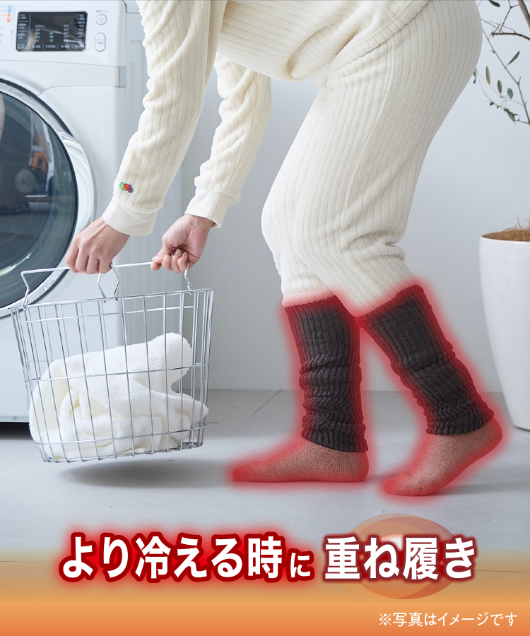 洗面所や廊下など家中の寒い場所は、重ね履きでより暖かくお過ごしいただけます。