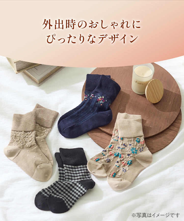 保温性があり柔らかいアクリルと吸湿発熱性のあるウールを使用しているため、やさしい肌ざわりとあたたかさを実感いただけます。
