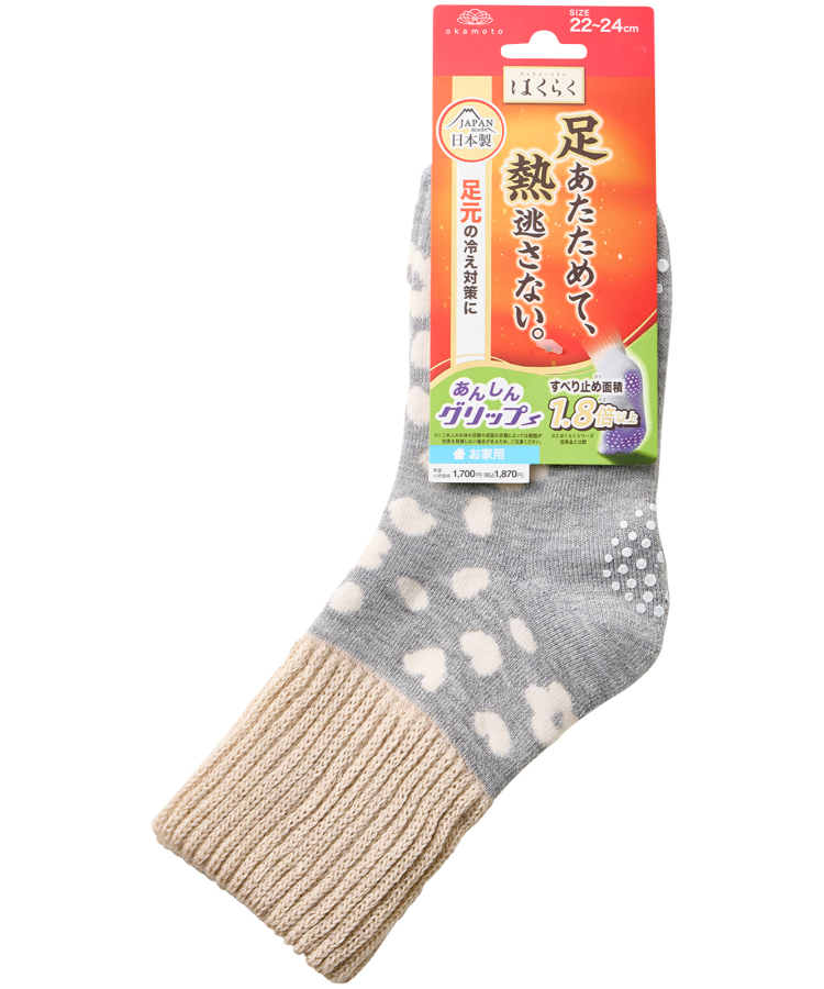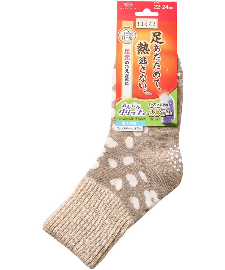 パイル編みであたたかく、あんしんグリップで滑りにくく歩きやすいためフローリングや階段でも安心!