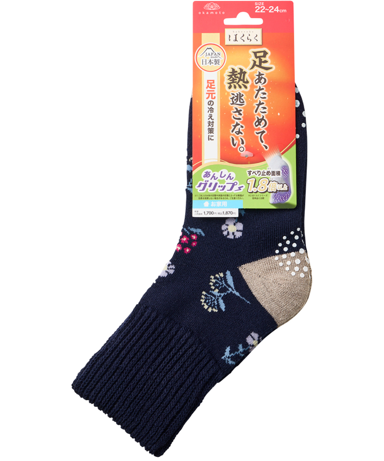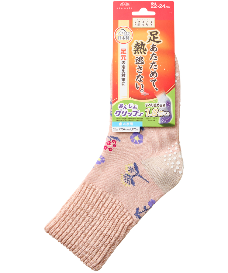 | 商品名 | はくらく あったか レディース ショートクルー丈 のびーる 厚地 安心グリップ 花柄 お家用(秋冬) |