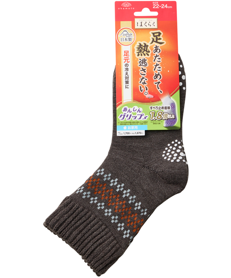 | 商品名 | はくらく あったか レディース ショートクルー丈 のびーる 厚地 安心グリップ 足首幾何学柄 お家用 (秋冬) |