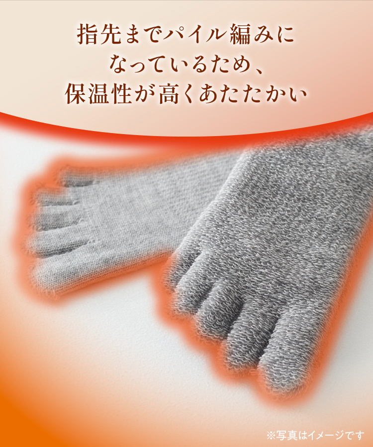 指先1本1本パイル編みになっているため、指先まで暖かくお過ごしいただけます。