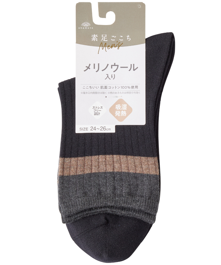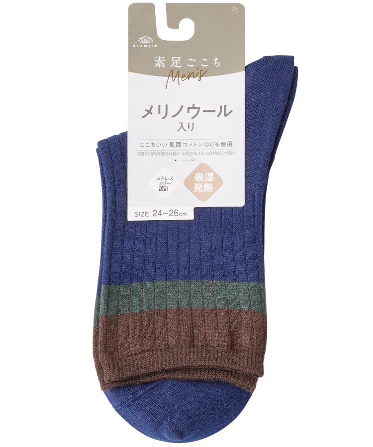 | 商品名 | 素足ごこち 秋冬 メンズ 18cm丈 メリノウール入り綿 吸湿発熱 ライン切替 |