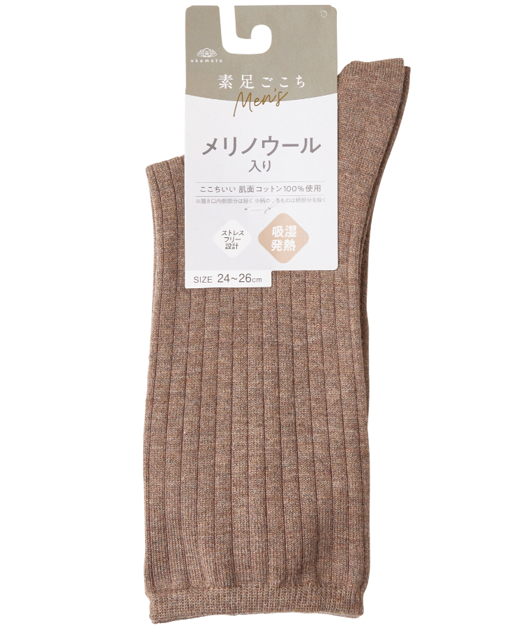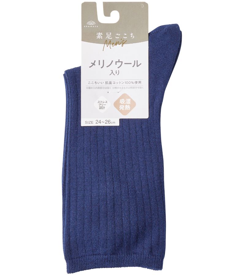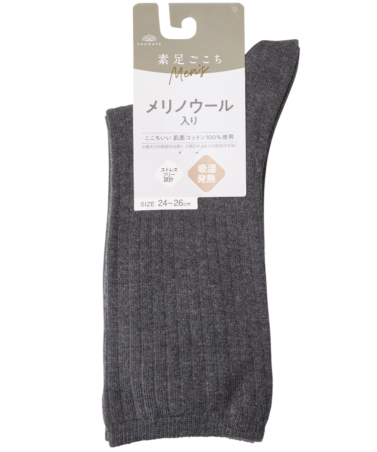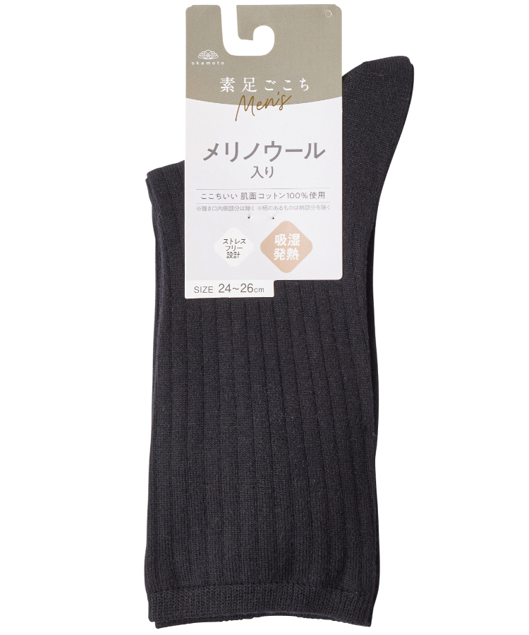 | 商品名 | 素足ごこち 秋冬 メンズ クルー丈 メリノウール入り綿 吸湿発熱 リブ 5×1針抜 |
