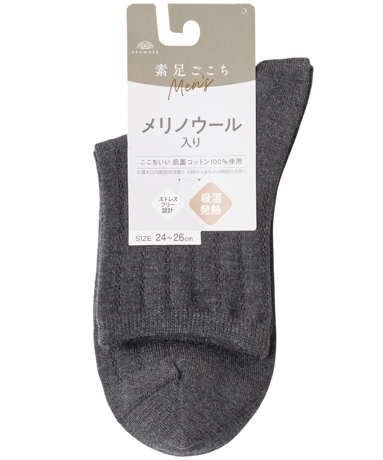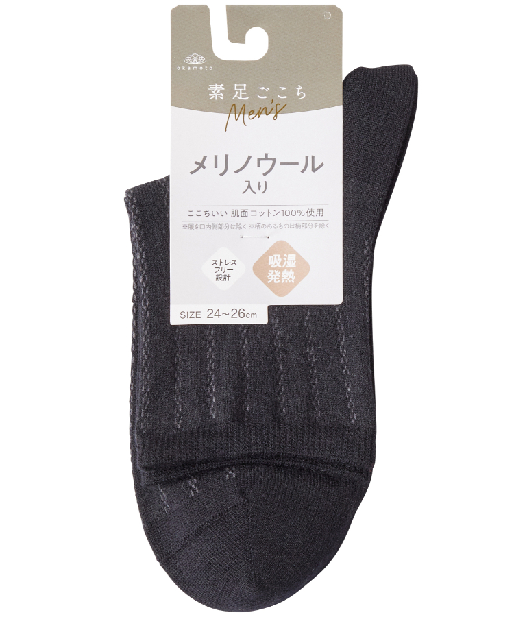 | 商品名 | 素足ごこち 秋冬 メンズ 15cm丈 メリノウール入り綿 吸湿発熱 縦柄 5×1針抜 |