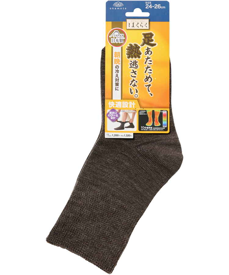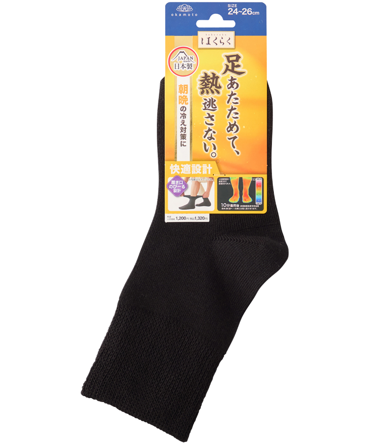 【期間限定10%OFF!】はくらく あったか メンズ ショートクルー丈 のびーる 薄地 無地(秋冬)