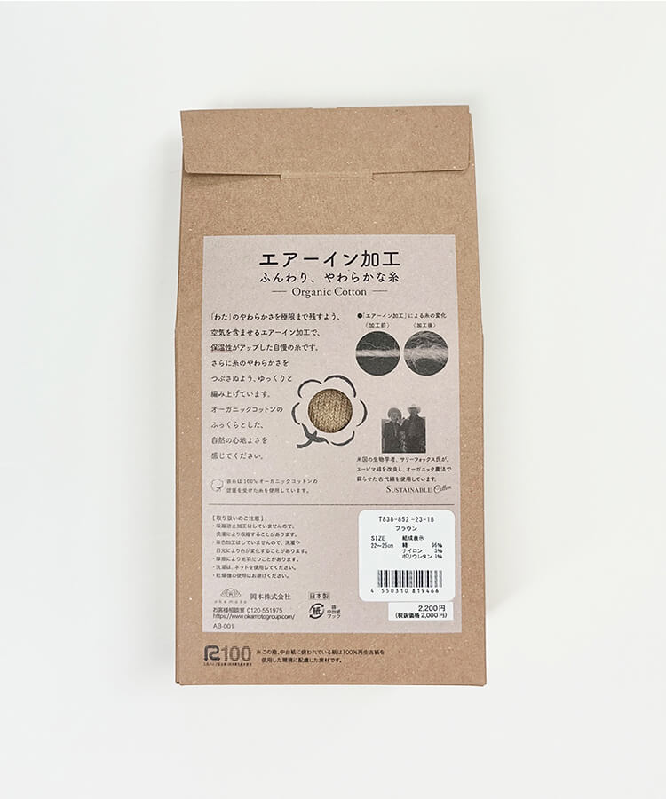 | 機能・特長 | ・オーガニックコットン使用・吸湿・発熱・保温・肌側パイル編み |